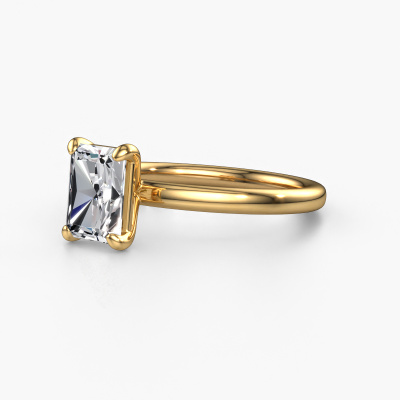 The ring shown above is called the Simone RAD 1. We call this a solitaire ring because it contains a single gemstone. The engagement ring is made in 14 Carat gold and has a radiant lab grown diamond of 1.50 crt. This extraordinary classic gold solitaire engagement ring is set with a beautiful radiant lab grown diamond to add sparkle to your proposal. The open prong setting allows light to strike the gemstone from various angles. Did you know a diamond represents everlasting love and fidelity? This makes it a perfect centrepiece. Our goldsmith carefully positions the gemstone of your choosing high on top of the ring, which makes it stand out. Each piece of jewellery is made to shine bright around your finger. Each jewel is hand made with love by our goldsmiths.Are you on a budget? Please feel free to contact us, so we can go discuss your options. We offer our engagement rings at guaranteed best price, because we make them to order. You won't find such a price anywhere else!Different styles of new rings are made daily by our team. Perhaps you have found a solitaire engagement ring somewhere. One you would like to give to your loved one. Please feel free to share your thoughts and design with our jewel designers. We would love to turn your design into a classic engagement ring. You can follow the development of your ring design because we use very detailed 3D drawings. On top of that, you can order a dummy of the design. A dummy is a plastic ring, which can be shaped according your ring design. You can try it on and check if the engagement ring is up to standard. We will gladly send you a non-binding offer, based on a fair price/ quality ratio. The offer will baffle you, considering the quality of the ring and gemstones.To make it easier for you, we offer a 30 day return policy. Check our terms and conditions.