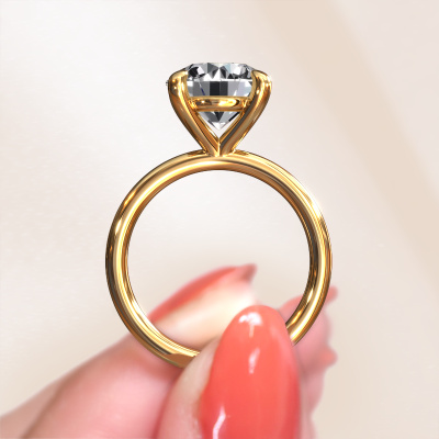 The ring shown above is called the Simone RND 1. We call this a solitaire ring because it contains a single gemstone. The engagement ring is made in 14 Carat gold and has a round lab grown diamond of 4.00 crt. This extraordinary classic gold solitaire engagement ring is set with a beautiful round lab grown diamond to add sparkle to your proposal. The open prong setting allows light to strike the gemstone from various angles. Did you know a diamond represents everlasting love and fidelity? This makes it a perfect centrepiece. Our goldsmith carefully positions the gemstone of your choosing high on top of the ring, which makes it stand out. Each piece of jewellery is made just for you, with attention to detail and design.By using a combination of the latest modern techniques, combined with ancient crafting, we can make all our engagement rings in our own studio. Each jewel is made to order. This is advantageous because we can offer you a price you won't find anywhere else.Different styles of new rings are made daily by our team. Perhaps you have found a solitaire engagement ring somewhere. One you would like to give to your loved one. Please feel free to share your thoughts and design with our jewel designers. We would love to turn your design into a classic engagement ring. You can follow the development of your ring design because we use very detailed 3D drawings. On top of that, you can order a dummy of the design. A dummy is a plastic ring, which can be shaped according your ring design. You can try it on and check if the engagement ring is up to standard. We will gladly send you a non-binding offer, based on a fair price/ quality ratio. The offer will baffle you, considering the quality of the ring and gemstones.To make it easier for you, we offer a 30 day return policy. Check our terms and conditions.