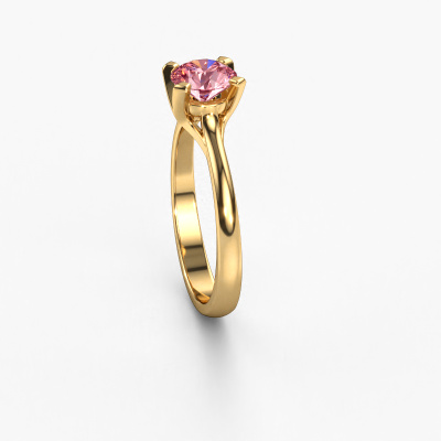 The ring shown above is called the Isa 1. We call this a solitaire ring because it contains a single gemstone. The engagement ring is made in 14 Carat gold and has a round pink lab grown diamond of 5.7 mm. This extraordinary classic gold solitaire engagement ring is set with a beautiful round pink lab grown diamond to add sparkle to your proposal. The open prong setting allows light to strike the gemstone from various angles. Did you know a diamond represents everlasting love and fidelity? This makes it a perfect centrepiece. Our goldsmith carefully positions the gemstone of your choosing high on top of the ring, which makes it stand out. Each piece of jewellery is made just for you by our master goldsmiths in our own studio.By using a combination of the latest modern techniques, combined with ancient crafting, we can make all our engagement rings in our own studio. Each jewel is made to order. This is advantageous because we can offer you a price you won't find anywhere else.Do you have a specific ring in mind? One you came across somewhere. Please feel free to tell us your wishes and we will turn your design into a unique engagement ring. You can follow the development of your ring design because we use 3D drawings. This gives you a realistic preview of your design. We will gladly send you a non-binding offer, based on a fair price/ quality ratio. It will amaze you.To make it easier for you, we offer a 30 day return policy. Check our terms and conditions.