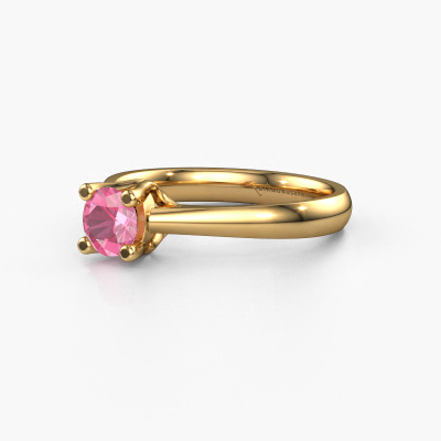 The ring shown above is called the Janna 1. We call this a solitaire ring because it contains a single gemstone. The engagement ring is made in 14 Carat gold and has a round pink sapphire of 5 mm. This extraordinary classic gold solitaire engagement ring is set with a beautiful round pink sapphire to add sparkle to your proposal. The open prong setting allows light to strike the gemstone from various angles. Did you know a diamond represents everlasting love and fidelity? This makes it a perfect centrepiece. Our goldsmith carefully positions the gemstone of your choosing high on top of the ring, which makes it stand out. Each piece of jewellery is made by a team of passionate goldsmiths and jewel designers. This will make your crown jewel truly eye-catching.Are you on a budget? Please feel free to contact us, so we can go discuss your options. We offer our engagement rings at guaranteed best price, because we make them to order. You won't find such a price anywhere else!Our designers and goldsmiths work together each day, creating new jewels. Perhaps you have found a nice classic engagement ring somewhere, which can be used to customize your unique ring. Please feel free to contact us. We will make you an offer, based on a fair price/ quality ratio, which will amaze you.To make it easier for you, we offer a 30 day return policy. Check our terms and conditions.