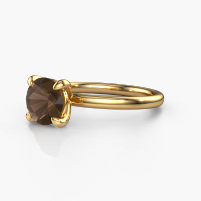 The ring shown above is called the Simone RND 1. We call this a solitaire ring because it contains a single gemstone. The engagement ring is made in 14 Carat gold and has a round smokey quartz of 7.3 mm. This extraordinary classic gold solitaire engagement ring is set with a beautiful round smokey quartz to add sparkle to your proposal. The open prong setting allows light to strike the gemstone from various angles. Did you know a diamond represents everlasting love and fidelity? This makes it a perfect centrepiece. Our goldsmith carefully positions the gemstone of your choosing high on top of the ring, which makes it stand out. Each piece of jewellery is made just for you, with attention to detail and design.By using a combination of the latest modern techniques, combined with ancient crafting, we can make all our engagement rings in our own studio. Each jewel is made to order. This is advantageous because we can offer you a price you won't find anywhere else.Different styles of new rings are made daily by our team. Perhaps you have found a solitaire engagement ring somewhere. One you would like to give to your loved one. Please feel free to share your thoughts and design with our jewel designers. We would love to turn your design into a classic engagement ring. You can follow the development of your ring design because we use very detailed 3D drawings. On top of that, you can order a dummy of the design. A dummy is a plastic ring, which can be shaped according your ring design. You can try it on and check if the engagement ring is up to standard. We will gladly send you a non-binding offer, based on a fair price/ quality ratio. The offer will baffle you, considering the quality of the ring and gemstones.To make it easier for you, we offer a 30 day return policy. Check our terms and conditions.