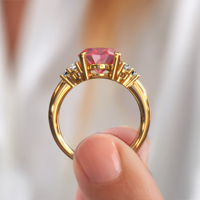 This 14 Carat gold ring is called Aleida OVL 1 and is set with 9x7 mm tourmaline pink. Are you looking for a classic gold engagement ring which you can customize to your own liking? This classic engagement ring is set with tourmaline pink which is carefully selected for this specific ring in order to create the best effect. Our expert goldsmith will create your ring in our own crafting studio, where the tourmaline pink will be set with great care. The ring will then be polished till it shines perfectly. Nothing but the best for the love of your life! The great thing about our online tool is, that you can compile your own jewellery into a unique, personalized piece. Each piece of jewellery is created to add sparkle to your finger, each jewel is lovingly made by hand by our goldsmiths.Are you on a budget? Please feel free to contact us, so we can go discuss your options. We offer our engagement rings at guaranteed best price, because we make them to order. You won't find such a price anywhere else!Our team adds new designs to our online collection daily. Our designers and goldsmiths work together in creating the best design. We strive to offer a diverse collection of jewels. Perhaps you have a specific jewel design in mind. One you came across somewhere. Please contact us for a free consultation. We will make you an offer, based on a fair price/ quality ratio, that will baffle you.To make it easier for you, we offer a 30 day return policy. Check our terms and conditions.