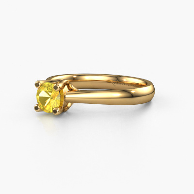 The ring shown above is called the Janna 1. We call this a solitaire ring because it contains a single gemstone. The engagement ring is made in 14 Carat gold and has a round yellow sapphire of 5 mm. This extraordinary classic gold solitaire engagement ring is set with a beautiful round yellow sapphire to add sparkle to your proposal. The open prong setting allows light to strike the gemstone from various angles. Did you know a diamond represents everlasting love and fidelity? This makes it a perfect centrepiece. Our goldsmith carefully positions the gemstone of your choosing high on top of the ring, which makes it stand out. Each piece of jewellery is made by a team of passionate goldsmiths and jewel designers. This will make your crown jewel truly eye-catching.Are you on a budget? Please feel free to contact us, so we can go discuss your options. We offer our engagement rings at guaranteed best price, because we make them to order. You won't find such a price anywhere else!Our designers and goldsmiths work together each day, creating new jewels. Perhaps you have found a nice classic engagement ring somewhere, which can be used to customize your unique ring. Please feel free to contact us. We will make you an offer, based on a fair price/ quality ratio, which will amaze you.To make it easier for you, we offer a 30 day return policy. Check our terms and conditions.