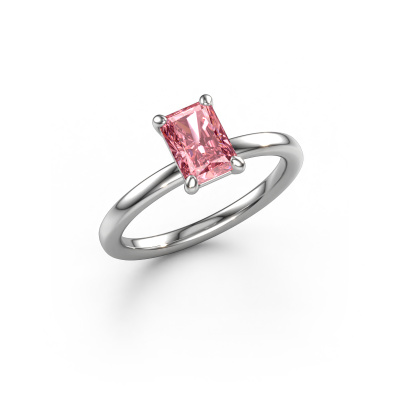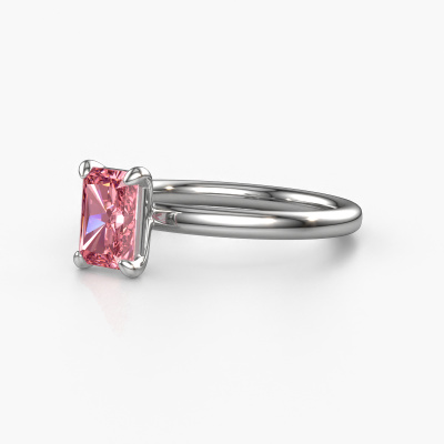 The ring shown above is called the Simone RAD 1. We call this a solitaire ring because it contains a single gemstone. The engagement ring is made in platinum and has a radiant pink lab grown diamond of 7x5 mm. This extraordinary classic platinum solitaire engagement ring is set with a beautiful radiant pink lab grown diamond to add sparkle to your proposal. The open prong setting allows light to strike the gemstone from various angles. Did you know a diamond represents everlasting love and fidelity? This makes it a perfect centrepiece. Our goldsmith carefully positions the gemstone of your choosing high on top of the ring, which makes it stand out. Each piece of jewellery is made to shine bright around your finger. Each jewel is hand made with love by our goldsmiths.Are you on a budget? Please feel free to contact us, so we can go discuss your options. We offer our engagement rings at guaranteed best price, because we make them to order. You won't find such a price anywhere else!Different styles of new rings are made daily by our team. Perhaps you have found a solitaire engagement ring somewhere. One you would like to give to your loved one. Please feel free to share your thoughts and design with our jewel designers. We would love to turn your design into a classic engagement ring. You can follow the development of your ring design because we use very detailed 3D drawings. On top of that, you can order a dummy of the design. A dummy is a plastic ring, which can be shaped according your ring design. You can try it on and check if the engagement ring is up to standard. We will gladly send you a non-binding offer, based on a fair price/ quality ratio. The offer will baffle you, considering the quality of the ring and gemstones.To make it easier for you, we offer a 30 day return policy. Check our terms and conditions.