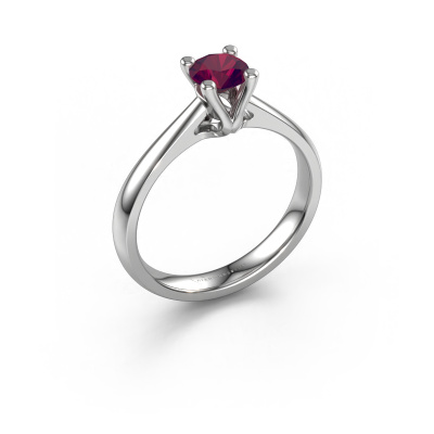The ring shown above is called the Janna 1. We call this a solitaire ring because it contains a single gemstone. The engagement ring is made in platinum and has a round rhodolite of 5 mm. This extraordinary classic platinum solitaire engagement ring is set with a beautiful round rhodolite to add sparkle to your proposal. The open prong setting allows light to strike the gemstone from various angles. Did you know a diamond represents everlasting love and fidelity? This makes it a perfect centrepiece. Our goldsmith carefully positions the gemstone of your choosing high on top of the ring, which makes it stand out. Each piece of jewellery is made by a team of passionate goldsmiths and jewel designers. This will make your crown jewel truly eye-catching.Are you on a budget? Please feel free to contact us, so we can go discuss your options. We offer our engagement rings at guaranteed best price, because we make them to order. You won't find such a price anywhere else!Our designers and goldsmiths work together each day, creating new jewels. Perhaps you have found a nice classic engagement ring somewhere, which can be used to customize your unique ring. Please feel free to contact us. We will make you an offer, based on a fair price/ quality ratio, which will amaze you.To make it easier for you, we offer a 30 day return policy. Check our terms and conditions.