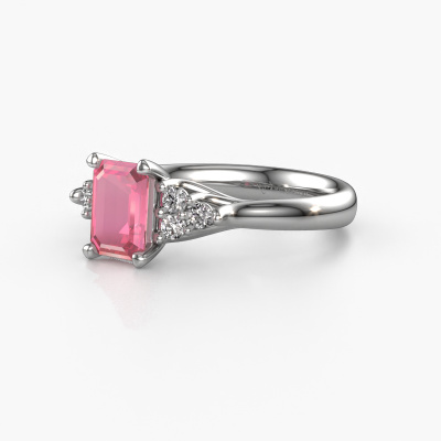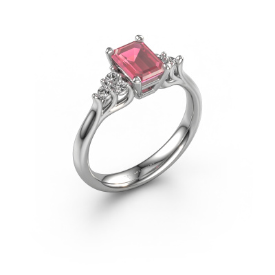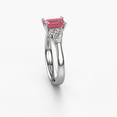 The ring shown above is called the Monika EME. We call this a solitaire ring because it contains a single gemstone. The engagement ring is made in platinum and has a emerald cut tourmaline pink of 7x5 mm. This extraordinary classic platinum solitaire engagement ring is set with a beautiful emerald cut tourmaline pink to add sparkle to your proposal. The open prong setting allows light to strike the gemstone from various angles. Did you know a diamond represents everlasting love and fidelity? This makes it a perfect centrepiece. Our goldsmith carefully positions the gemstone of your choosing high on top of the ring, which makes it stand out. Each piece of jewellery is made just for you by our master goldsmiths in our own studio.By using our modern techniques, we can design and customize the finest quality jewels with the utmost care for you. Our engagement rings are always priced 30 percent lower than other jewellers. We make engagement rings to order so we don't have to maintain a large stock. If you have a certain budget, we are more than happy to advice you accordingly.Our team adds new designs to our online collection daily. Our designers and goldsmiths work together in creating the best design. We strive to offer a diverse collection of jewels. Perhaps you have a specific jewel design in mind. One you came across somewhere. Please contact us for a free consultation. We will make you an offer, based on a fair price/ quality ratio, that will baffle you.To make it easier for you, we offer a 30 day return policy. Check our terms and conditions.