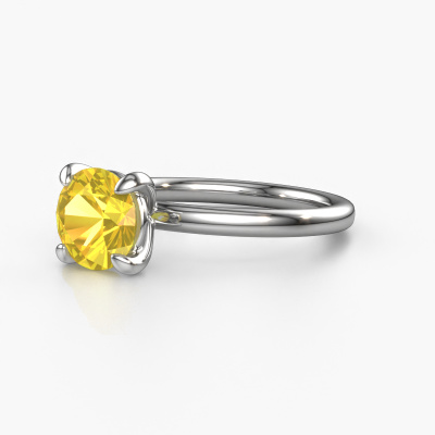 The ring shown above is called the Simone RND 1. We call this a solitaire ring because it contains a single gemstone. The engagement ring is made in platinum and has a round yellow sapphire of 7.3 mm. This extraordinary classic platinum solitaire engagement ring is set with a beautiful round yellow sapphire to add sparkle to your proposal. The open prong setting allows light to strike the gemstone from various angles. Did you know a diamond represents everlasting love and fidelity? This makes it a perfect centrepiece. Our goldsmith carefully positions the gemstone of your choosing high on top of the ring, which makes it stand out. Each piece of jewellery is made just for you, with attention to detail and design.By using a combination of the latest modern techniques, combined with ancient crafting, we can make all our engagement rings in our own studio. Each jewel is made to order. This is advantageous because we can offer you a price you won't find anywhere else.Different styles of new rings are made daily by our team. Perhaps you have found a solitaire engagement ring somewhere. One you would like to give to your loved one. Please feel free to share your thoughts and design with our jewel designers. We would love to turn your design into a classic engagement ring. You can follow the development of your ring design because we use very detailed 3D drawings. On top of that, you can order a dummy of the design. A dummy is a plastic ring, which can be shaped according your ring design. You can try it on and check if the engagement ring is up to standard. We will gladly send you a non-binding offer, based on a fair price/ quality ratio. The offer will baffle you, considering the quality of the ring and gemstones.To make it easier for you, we offer a 30 day return policy. Check our terms and conditions.