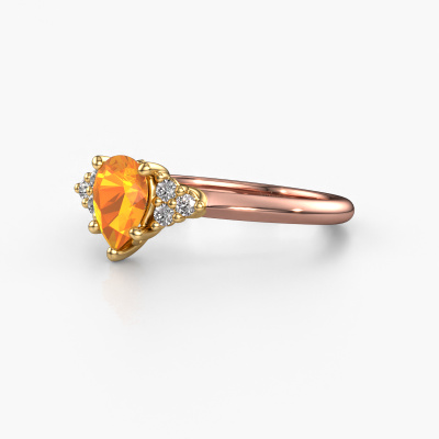 This 14 Carat rose gold ring is called Felipa PER and is set with 7x5 mm citrin. Are you looking for a classic rose gold engagement ring which you can customize to your own liking? This classic engagement ring is set with citrin which is carefully selected for this specific ring in order to create the best effect. Our expert goldsmith will create your ring in our own crafting studio, where the citrin will be set with great care. The ring will then be polished till it shines perfectly. Nothing but the best for the love of your life! The great thing about our online tool is, that you can compile your own jewellery into a unique, personalized piece. Each piece of jewellery is made with passion and love by one of our master goldsmiths.Are you on a budget? Please feel free to contact us, so we can go discuss your options. We offer our engagement rings at guaranteed best price, because we make them to order. You won't find such a price anywhere else!Have you found a specific engagement ring somewhere which you would like to give to your loved one? Please feel free to express your wishes to our jewel designers because we would be honoured to turn your design into a classic engagement ring. You can follow the development of your ring design because we use 3D drawings. This gives you a realistic preview of how your design will look. You can also preorder a dummy. A dummy is a plastic ring, which can be shaped according your ring design. You can try it on and check if its width and size are suitable for you. We will gladly send you a non-binding offer, based on a fair price/ quality ratio. It will amaze you, considering the quality of the ring and gemstones.To make it easier for you, we offer a 30 day return policy. Check our terms and conditions.