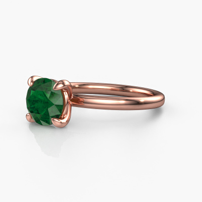 The ring shown above is called the Simone RND 1. We call this a solitaire ring because it contains a single gemstone. The engagement ring is made in 14 Carat rose gold and has a round emerald of 7.3 mm. This extraordinary classic rose gold solitaire engagement ring is set with a beautiful round emerald to add sparkle to your proposal. The open prong setting allows light to strike the gemstone from various angles. Did you know a diamond represents everlasting love and fidelity? This makes it a perfect centrepiece. Our goldsmith carefully positions the gemstone of your choosing high on top of the ring, which makes it stand out. Each piece of jewellery is made just for you, with attention to detail and design.By using a combination of the latest modern techniques, combined with ancient crafting, we can make all our engagement rings in our own studio. Each jewel is made to order. This is advantageous because we can offer you a price you won't find anywhere else.Different styles of new rings are made daily by our team. Perhaps you have found a solitaire engagement ring somewhere. One you would like to give to your loved one. Please feel free to share your thoughts and design with our jewel designers. We would love to turn your design into a classic engagement ring. You can follow the development of your ring design because we use very detailed 3D drawings. On top of that, you can order a dummy of the design. A dummy is a plastic ring, which can be shaped according your ring design. You can try it on and check if the engagement ring is up to standard. We will gladly send you a non-binding offer, based on a fair price/ quality ratio. The offer will baffle you, considering the quality of the ring and gemstones.To make it easier for you, we offer a 30 day return policy. Check our terms and conditions.