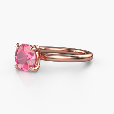 The ring shown above is called the Simone RND 1. We call this a solitaire ring because it contains a single gemstone. The engagement ring is made in 14 Carat rose gold and has a round pink sapphire of 7.3 mm. This extraordinary classic rose gold solitaire engagement ring is set with a beautiful round pink sapphire to add sparkle to your proposal. The open prong setting allows light to strike the gemstone from various angles. Did you know a diamond represents everlasting love and fidelity? This makes it a perfect centrepiece. Our goldsmith carefully positions the gemstone of your choosing high on top of the ring, which makes it stand out. Each piece of jewellery is made just for you, with attention to detail and design.By using a combination of the latest modern techniques, combined with ancient crafting, we can make all our engagement rings in our own studio. Each jewel is made to order. This is advantageous because we can offer you a price you won't find anywhere else.Different styles of new rings are made daily by our team. Perhaps you have found a solitaire engagement ring somewhere. One you would like to give to your loved one. Please feel free to share your thoughts and design with our jewel designers. We would love to turn your design into a classic engagement ring. You can follow the development of your ring design because we use very detailed 3D drawings. On top of that, you can order a dummy of the design. A dummy is a plastic ring, which can be shaped according your ring design. You can try it on and check if the engagement ring is up to standard. We will gladly send you a non-binding offer, based on a fair price/ quality ratio. The offer will baffle you, considering the quality of the ring and gemstones.To make it easier for you, we offer a 30 day return policy. Check our terms and conditions.