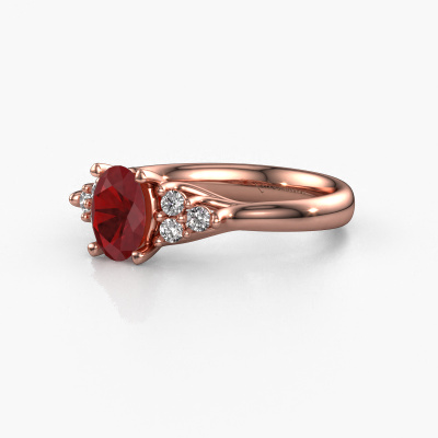 This 14 Carat rose gold ring is called Monika OVL and is set with 7x5 mm ruby. Are you looking for a classic rose gold engagement ring which you can customize to your own liking? This classic engagement ring is set with ruby which is carefully selected for this specific ring in order to create the best effect. Our expert goldsmith will create your ring in our own crafting studio, where the ruby will be set with great care. The ring will then be polished till it shines perfectly. Nothing but the best for the love of your life! The great thing about our online tool is, that you can compile your own jewellery into a unique, personalized piece. Each piece of jewellery is unique in every way! Simply customize to your likingAre you on a budget? Please feel free to contact us, so we can go discuss your options. We offer our engagement rings at guaranteed best price, because we make them to order. You won't find such a price anywhere else!Our team adds new designs to our online collection daily. Our designers and goldsmiths work together in creating the best design. We strive to offer a diverse collection of jewels. Perhaps you have a specific jewel design in mind. One you came across somewhere. Please contact us for a free consultation. We will make you an offer, based on a fair price/ quality ratio, that will baffle you.To make it easier for you, we offer a 30 day return policy. Check our terms and conditions.