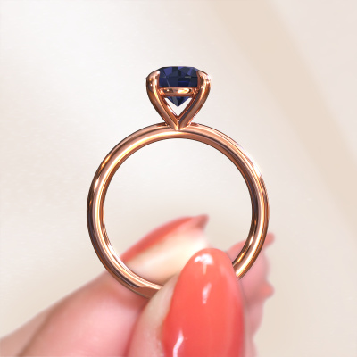 The ring shown above is called the Simone RND 1. We call this a solitaire ring because it contains a single gemstone. The engagement ring is made in 14 Carat rose gold and has a round sapphire of 7.3 mm. This extraordinary classic rose gold solitaire engagement ring is set with a beautiful round sapphire to add sparkle to your proposal. The open prong setting allows light to strike the gemstone from various angles. Did you know a diamond represents everlasting love and fidelity? This makes it a perfect centrepiece. Our goldsmith carefully positions the gemstone of your choosing high on top of the ring, which makes it stand out. Each piece of jewellery is made just for you, with attention to detail and design.By using a combination of the latest modern techniques, combined with ancient crafting, we can make all our engagement rings in our own studio. Each jewel is made to order. This is advantageous because we can offer you a price you won't find anywhere else.Different styles of new rings are made daily by our team. Perhaps you have found a solitaire engagement ring somewhere. One you would like to give to your loved one. Please feel free to share your thoughts and design with our jewel designers. We would love to turn your design into a classic engagement ring. You can follow the development of your ring design because we use very detailed 3D drawings. On top of that, you can order a dummy of the design. A dummy is a plastic ring, which can be shaped according your ring design. You can try it on and check if the engagement ring is up to standard. We will gladly send you a non-binding offer, based on a fair price/ quality ratio. The offer will baffle you, considering the quality of the ring and gemstones.To make it easier for you, we offer a 30 day return policy. Check our terms and conditions.