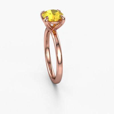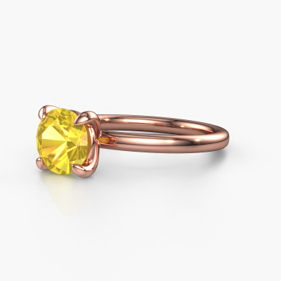The ring shown above is called the Simone RND 1. We call this a solitaire ring because it contains a single gemstone. The engagement ring is made in 14 Carat rose gold and has a round yellow sapphire of 7.3 mm. This extraordinary classic rose gold solitaire engagement ring is set with a beautiful round yellow sapphire to add sparkle to your proposal. The open prong setting allows light to strike the gemstone from various angles. Did you know a diamond represents everlasting love and fidelity? This makes it a perfect centrepiece. Our goldsmith carefully positions the gemstone of your choosing high on top of the ring, which makes it stand out. Each piece of jewellery is made just for you, with attention to detail and design.By using a combination of the latest modern techniques, combined with ancient crafting, we can make all our engagement rings in our own studio. Each jewel is made to order. This is advantageous because we can offer you a price you won't find anywhere else.Different styles of new rings are made daily by our team. Perhaps you have found a solitaire engagement ring somewhere. One you would like to give to your loved one. Please feel free to share your thoughts and design with our jewel designers. We would love to turn your design into a classic engagement ring. You can follow the development of your ring design because we use very detailed 3D drawings. On top of that, you can order a dummy of the design. A dummy is a plastic ring, which can be shaped according your ring design. You can try it on and check if the engagement ring is up to standard. We will gladly send you a non-binding offer, based on a fair price/ quality ratio. The offer will baffle you, considering the quality of the ring and gemstones.To make it easier for you, we offer a 30 day return policy. Check our terms and conditions.