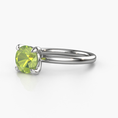 The ring shown above is called the Simone RND 1. We call this a solitaire ring because it contains a single gemstone. The engagement ring is made in 14 Carat white gold and has a round peridot of 7.3 mm. This extraordinary classic white gold solitaire engagement ring is set with a beautiful round peridot to add sparkle to your proposal. The open prong setting allows light to strike the gemstone from various angles. Did you know a diamond represents everlasting love and fidelity? This makes it a perfect centrepiece. Our goldsmith carefully positions the gemstone of your choosing high on top of the ring, which makes it stand out. Each piece of jewellery is made just for you, with attention to detail and design.By using a combination of the latest modern techniques, combined with ancient crafting, we can make all our engagement rings in our own studio. Each jewel is made to order. This is advantageous because we can offer you a price you won't find anywhere else.Different styles of new rings are made daily by our team. Perhaps you have found a solitaire engagement ring somewhere. One you would like to give to your loved one. Please feel free to share your thoughts and design with our jewel designers. We would love to turn your design into a classic engagement ring. You can follow the development of your ring design because we use very detailed 3D drawings. On top of that, you can order a dummy of the design. A dummy is a plastic ring, which can be shaped according your ring design. You can try it on and check if the engagement ring is up to standard. We will gladly send you a non-binding offer, based on a fair price/ quality ratio. The offer will baffle you, considering the quality of the ring and gemstones.To make it easier for you, we offer a 30 day return policy. Check our terms and conditions.
