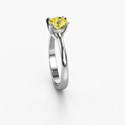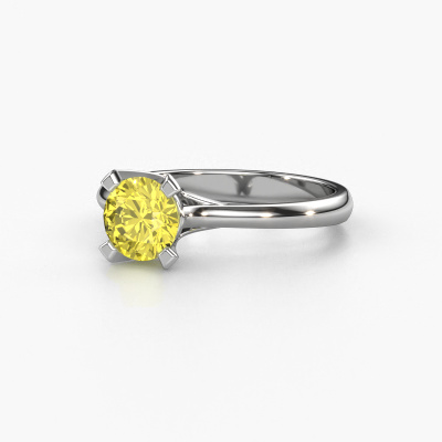 The ring shown above is called the Isa 1. We call this a solitaire ring because it contains a single gemstone. The engagement ring is made in 14 Carat white gold and has a round yellow lab grown diamond of 5.7 mm. This extraordinary classic white gold solitaire engagement ring is set with a beautiful round yellow lab grown diamond to add sparkle to your proposal. The open prong setting allows light to strike the gemstone from various angles. Did you know a diamond represents everlasting love and fidelity? This makes it a perfect centrepiece. Our goldsmith carefully positions the gemstone of your choosing high on top of the ring, which makes it stand out. Each piece of jewellery is made just for you by our master goldsmiths in our own studio.By using a combination of the latest modern techniques, combined with ancient crafting, we can make all our engagement rings in our own studio. Each jewel is made to order. This is advantageous because we can offer you a price you won't find anywhere else.Do you have a specific ring in mind? One you came across somewhere. Please feel free to tell us your wishes and we will turn your design into a unique engagement ring. You can follow the development of your ring design because we use 3D drawings. This gives you a realistic preview of your design. We will gladly send you a non-binding offer, based on a fair price/ quality ratio. It will amaze you.To make it easier for you, we offer a 30 day return policy. Check our terms and conditions.