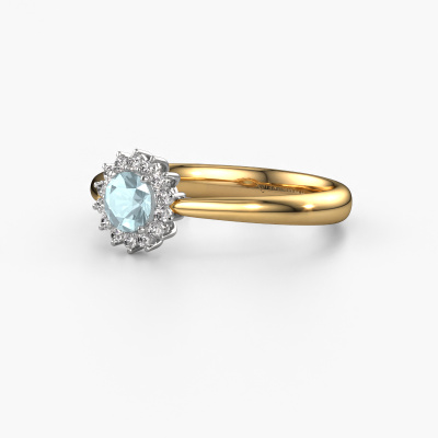 The ring shown above is called the Tilly RND 1. We call this type of ring a cluster ring. The centre gemstone is surrounded by smaller sized stones. This 14 Carat gold version is set with a 4.2 mm round aquamarine centre stone, embraced by smaller diamonds. What makes this classic gold cluster ring special is the setting of the smaller gems surrounding the centre aquamarine, which are shaped like a beautiful flower. The surrounding cluster of stones frame the middle centre stone in such a way to make it appear bigger. This type of engagement ring is also called a flower ring. It is very important that the smaller diamonds are positioned identically so there is no interference of light but perfect unity instead. Our skilled Goldsmiths get the job done. Each individual stone is carefully set by hand. During manufacturing, light fall is constantly monitored to make sure the special cluster effect is still visible. In the end you get the perfect engagement ring with a radiant aquamarine gemstone centrepiece. You can imagine the effect of a ring of such significance when you give tot the love of your life on her special day to shine. This jewel is made to shine bright around your finger. Each jewel is hand made with love by our goldsmiths.By using a combination of the latest modern techniques, combined with ancient crafting, we can make all our engagement rings in our own studio. Each jewel is made to order. This is advantageous because we can offer you a price you won't find anywhere else.Our team adds new designs to our online collection daily. Our designers and goldsmiths work together in creating the best design. We strive to offer a diverse collection of jewels. Perhaps you have a specific jewel design in mind. One you came across somewhere. Please contact us for a free consultation. We will make you an offer, based on a fair price/ quality ratio, that will baffle you.To make it easier for you, we offer a 30 day return policy. Check our terms and conditions.