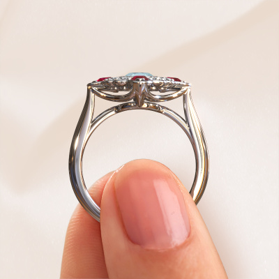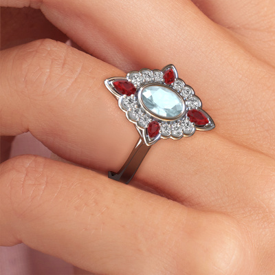 This 14 Carat white gold ring is called Door and is set with 7x5 mm aquamarine. An extraordinary white gold vintage ring. One that will surely make the love of your life shine like a diamond! That is what we hope to achieve. This vintage engagement ring is set with exquisite aquamarine. Whichever gemstone you choose from our selection, is up to you. The gemstone is selected with great care because we believe your daring engagement ring must be adorned with nothing but the most beautiful gemstone. Wouldn't you agree? Our expert goldsmith will design your ring in our own crafting studio, where the aquamarine will be set with great precision. The ring will then be polished till it shines perfectly. Nothing but the best for the love of your life! This jewel is made just for you by our master goldsmiths in our own studio.After receiving your order, our goldsmiths will passionately start the creative process of making your engagement ring in our own studio. Because we don't have a big stockpile, these costs will not be passed on to you. Our pricing is proof of that! We offer top quality jewels at lowest price, guaranteed.Our team adds new designs to our online collection daily. Our designers and goldsmiths work together in creating the best design. We strive to offer a diverse collection of jewels. Perhaps you have a specific jewel design in mind. One you came across somewhere. Please contact us for a free consultation. We will make you an offer, based on a fair price/ quality ratio, that will baffle you.To make it easier for you, we offer a 30 day return policy. Check our terms and conditions.