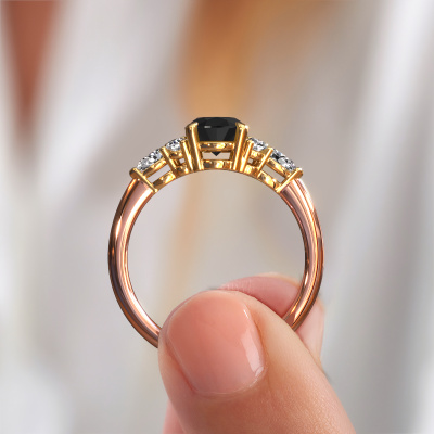 This 14 Carat rose gold ring is called Melani OVL and is set with 1.94 crt black diamond. This exclusive rose gold cluster engagement ring is a true work of art! The ornaments are crafted with a lot of patience and great passion. In order to create this ring with great precision, this craft requires a keen eye and skilful hand. A challenge which ignites a fire in our expert goldsmith. The exquisite black diamonds are set in a special way so they stand out even more. This gives the ring an even more glamorous appearance. The stylish engagement ring is actually unique on its own because of the gemstones which we carefully select especially for this ring. On top of that you select the precious metals which will be used to create a unique ring for the most extraordinary woman in your life! This jewel is made by a team of passionate goldsmiths and jewel designers. This will make your crown jewel truly eye-catching.By using a combination of the latest modern techniques, combined with ancient crafting, we can make all our engagement rings in our own studio. Each jewel is made to order. This is advantageous because we can offer you a price you won't find anywhere else.Our designers and goldsmiths work together each day, creating new jewels. Perhaps you have found a nice fashionable engagement ring somewhere, which can be used to customize your unique ring. Please feel free to contact us. We will make you an offer, based on a fair price/ quality ratio, which will amaze you.To make it easier for you, we offer a 30 day return policy. Check our terms and conditions.