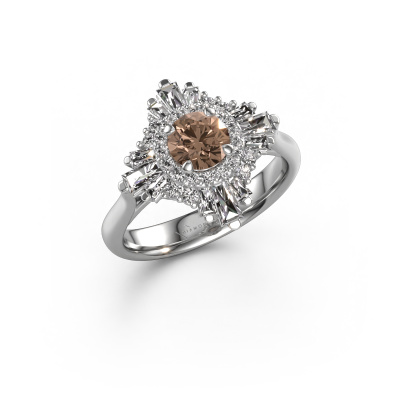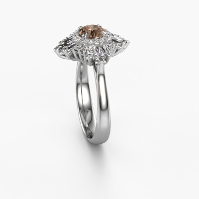 This 14 Carat white gold ring is called Thalia and is set with 1.443 crt brown diamond. An extraordinary white gold vintage ring. One that will surely make the love of your life shine like a diamond! That is what we hope to achieve. This vintage engagement ring is set with exquisite brown diamond. Whichever gemstone you choose from our selection, is up to you. The gemstone is selected with great care because we believe your special engagement ring must be adorned with nothing but the most beautiful gemstone. Wouldn't you agree? Our expert goldsmith will design your ring in our own crafting studio, where the brown diamond will be set with great precision. The ring will then be polished till it shines perfectly. Nothing but the best for the love of your life! This jewel is made with passion and love by one of our master goldsmiths.After receiving your order, our goldsmiths will passionately start the creative process of making your engagement ring in our own studio. Because we don't have a big stockpile, these costs will not be passed on to you. Our pricing is proof of that! We offer top quality jewels at lowest price, guaranteed.Have you found a specific engagement ring somewhere which you would like to give to your loved one? Please feel free to express your wishes to our jewel designers because we would be honoured to turn your design into a vintage engagement ring. You can follow the development of your ring design because we use 3D drawings. This gives you a realistic preview of how your design will look. You can also preorder a dummy. A dummy is a plastic ring, which can be shaped according your ring design. You can try it on and check if its width and size are suitable for you. We will gladly send you a non-binding offer, based on a fair price/ quality ratio. It will amaze you, considering the quality of the ring and gemstones.To make it easier for you, we offer a 30 day return policy. Check our terms and conditions.
