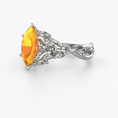 This 14 Carat white gold ring is called Samantha MRQ and is set with 11x5.5 mm citrin. This exclusive white gold cluster engagement ring is a true work of art! The ornaments are crafted with a lot of patience and great passion. In order to create this ring with great precision, this craft requires a keen eye and skilful hand. A challenge which ignites a fire in our expert goldsmith. The exquisite citrin are set in a special way so they stand out even more. This gives the ring an even more glamorous appearance. The graceful engagement ring is actually unique on its own because of the gemstones which we carefully select especially for this ring. On top of that you select the precious metals which will be used to create a unique ring for the most extraordinary woman in your life! This jewel is created to add sparkle to your finger, each jewel is lovingly made by hand by our goldsmiths.By using a combination of the latest modern techniques, combined with ancient crafting, we can make all our engagement rings in our own studio. Each jewel is made to order. This is advantageous because we can offer you a price you won't find anywhere else.Our team adds new designs to our online collection daily. Our designers and goldsmiths work together in creating the best design. We strive to offer a diverse collection of jewels. Perhaps you have a specific jewel design in mind. One you came across somewhere. Please contact us for a free consultation. We will make you an offer, based on a fair price/ quality ratio, that will baffle you.To make it easier for you, we offer a 30 day return policy. Check our terms and conditions.