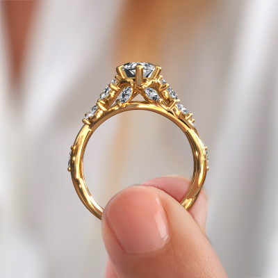 This 14 Carat gold ring is called Samantha MRQ and is set with 1.90 crt diamond. This exclusive gold cluster engagement ring is a true work of art! The ornaments are crafted with a lot of patience and great passion. In order to create this ring with great precision, this craft requires a keen eye and skilful hand. A challenge which ignites a fire in our expert goldsmith. The exquisite diamonds are set in a special way so they stand out even more. This gives the ring an even more glamorous appearance. The graceful engagement ring is actually unique on its own because of the gemstones which we carefully select especially for this ring. On top of that you select the precious metals which will be used to create a unique ring for the most extraordinary woman in your life! This jewel is created to add sparkle to your finger, each jewel is lovingly made by hand by our goldsmiths.By using a combination of the latest modern techniques, combined with ancient crafting, we can make all our engagement rings in our own studio. Each jewel is made to order. This is advantageous because we can offer you a price you won't find anywhere else.Our team adds new designs to our online collection daily. Our designers and goldsmiths work together in creating the best design. We strive to offer a diverse collection of jewels. Perhaps you have a specific jewel design in mind. One you came across somewhere. Please contact us for a free consultation. We will make you an offer, based on a fair price/ quality ratio, that will baffle you.To make it easier for you, we offer a 30 day return policy. Check our terms and conditions.