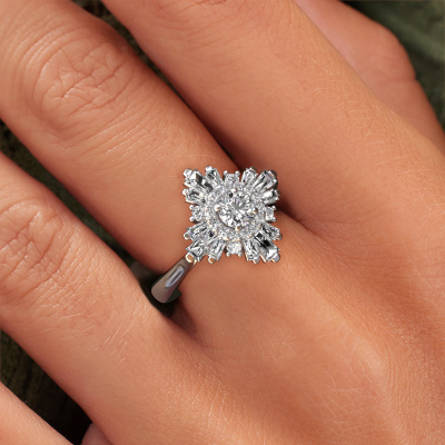 This platinum ring is called Thalia and is set with 1.106 crt diamond. An extraordinary platinum vintage ring. One that will surely make the love of your life shine like a diamond! That is what we hope to achieve. This vintage engagement ring is set with exquisite diamond. Whichever gemstone you choose from our selection, is up to you. The gemstone is selected with great care because we believe your special engagement ring must be adorned with nothing but the most beautiful gemstone. Wouldn't you agree? Our expert goldsmith will design your ring in our own crafting studio, where the diamond will be set with great precision. The ring will then be polished till it shines perfectly. Nothing but the best for the love of your life! This jewel is made with passion and love by one of our master goldsmiths.After receiving your order, our goldsmiths will passionately start the creative process of making your engagement ring in our own studio. Because we don't have a big stockpile, these costs will not be passed on to you. Our pricing is proof of that! We offer top quality jewels at lowest price, guaranteed.Have you found a specific engagement ring somewhere which you would like to give to your loved one? Please feel free to express your wishes to our jewel designers because we would be honoured to turn your design into a vintage engagement ring. You can follow the development of your ring design because we use 3D drawings. This gives you a realistic preview of how your design will look. You can also preorder a dummy. A dummy is a plastic ring, which can be shaped according your ring design. You can try it on and check if its width and size are suitable for you. We will gladly send you a non-binding offer, based on a fair price/ quality ratio. It will amaze you, considering the quality of the ring and gemstones.To make it easier for you, we offer a 30 day return policy. Check our terms and conditions.