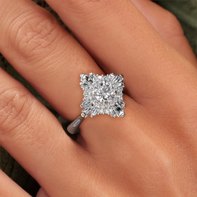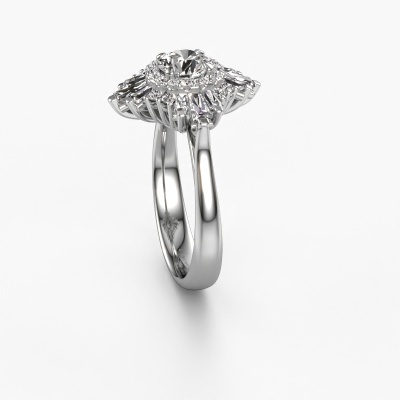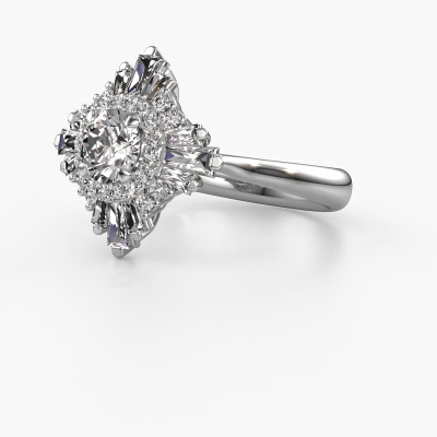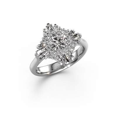 This 14 Carat white gold ring is called Thalia and is set with 1.443 crt diamond. An extraordinary white gold vintage ring. One that will surely make the love of your life shine like a diamond! That is what we hope to achieve. This vintage engagement ring is set with exquisite diamond. Whichever gemstone you choose from our selection, is up to you. The gemstone is selected with great care because we believe your special engagement ring must be adorned with nothing but the most beautiful gemstone. Wouldn't you agree? Our expert goldsmith will design your ring in our own crafting studio, where the diamond will be set with great precision. The ring will then be polished till it shines perfectly. Nothing but the best for the love of your life! This jewel is made with passion and love by one of our master goldsmiths.After receiving your order, our goldsmiths will passionately start the creative process of making your engagement ring in our own studio. Because we don't have a big stockpile, these costs will not be passed on to you. Our pricing is proof of that! We offer top quality jewels at lowest price, guaranteed.Have you found a specific engagement ring somewhere which you would like to give to your loved one? Please feel free to express your wishes to our jewel designers because we would be honoured to turn your design into a vintage engagement ring. You can follow the development of your ring design because we use 3D drawings. This gives you a realistic preview of how your design will look. You can also preorder a dummy. A dummy is a plastic ring, which can be shaped according your ring design. You can try it on and check if its width and size are suitable for you. We will gladly send you a non-binding offer, based on a fair price/ quality ratio. It will amaze you, considering the quality of the ring and gemstones.To make it easier for you, we offer a 30 day return policy. Check our terms and conditions.