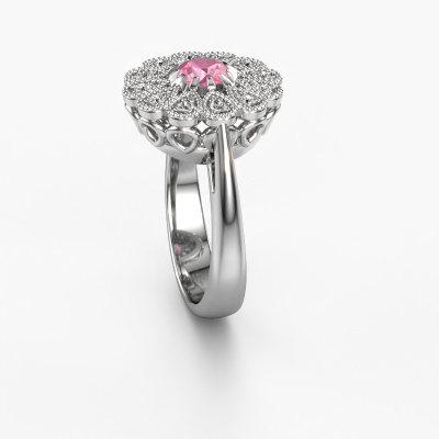 This platinum ring is called Kaat and is set with 5 mm pink sapphire. Is your girlfriend hooked on vintage? Then this platinum pearl edges engagement ring will surely match her style perfectly. A trendy ring with just a hint of vintage adornment. A truly stunning, romantic design! Especially when you customize your ring to your own liking. This vintage cluster engagement ring is set with stunning pink sapphire. As you can see, you are the boss in selecting a gemstone which matches the style of your girlfriend best. Each gemstone is carefully selected by our merchants whom are spread throughout the world. Nothing but the best gems for our expert goldsmith. After all, it is his crowning glory! Each jewel is created to add sparkle to your finger, each jewel is lovingly made by hand by our goldsmiths.Because we design and deliver our own rings, we can offer you a engagement ring at a price you won't find anywhere else. A ring is made to order, which helps prevent excess supplies, so we can make you a great price offer. We understand it feels risky, buying your engagement ring online, but we will gladly assist in the designing process, taking your budget into consideration.Our team adds new designs to our online collection daily. Our designers and goldsmiths work together in creating the best design. We strive to offer a diverse collection of jewels. Perhaps you have a specific jewel design in mind. One you came across somewhere. Please contact us for a free consultation. We will make you an offer, based on a fair price/ quality ratio, that will baffle you.To make it easier for you, we offer a 30 day return policy. Check our terms and conditions.