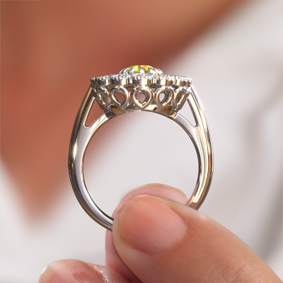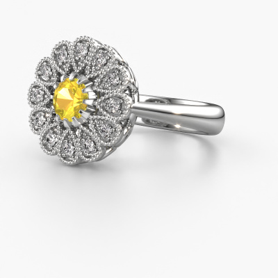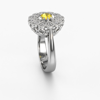 This platinum ring is called Kaat and is set with 5 mm yellow sapphire. Is your girlfriend hooked on vintage? Then this platinum pearl edges engagement ring will surely match her style perfectly. A trendy ring with just a hint of vintage adornment. A truly stunning, romantic design! Especially when you customize your ring to your own liking. This vintage cluster engagement ring is set with stunning yellow sapphire. As you can see, you are the boss in selecting a gemstone which matches the style of your girlfriend best. Each gemstone is carefully selected by our merchants whom are spread throughout the world. Nothing but the best gems for our expert goldsmith. After all, it is his crowning glory! Each jewel is created to add sparkle to your finger, each jewel is lovingly made by hand by our goldsmiths.Because we design and deliver our own rings, we can offer you a engagement ring at a price you won't find anywhere else. A ring is made to order, which helps prevent excess supplies, so we can make you a great price offer. We understand it feels risky, buying your engagement ring online, but we will gladly assist in the designing process, taking your budget into consideration.Our team adds new designs to our online collection daily. Our designers and goldsmiths work together in creating the best design. We strive to offer a diverse collection of jewels. Perhaps you have a specific jewel design in mind. One you came across somewhere. Please contact us for a free consultation. We will make you an offer, based on a fair price/ quality ratio, that will baffle you.To make it easier for you, we offer a 30 day return policy. Check our terms and conditions.