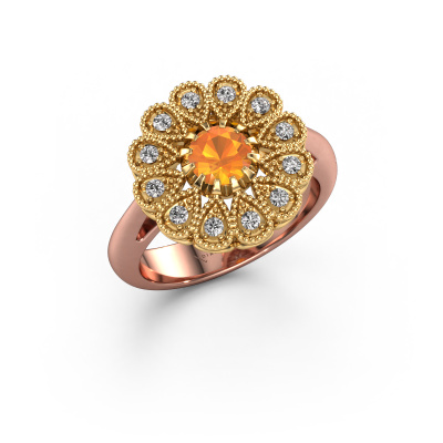 This 14 Carat rose gold ring is called Kaat and is set with 5 mm citrin. Is your girlfriend hooked on vintage? Then this rose gold pearl edges engagement ring will surely match her style perfectly. A trendy ring with just a hint of vintage adornment. A truly stunning, romantic design! Especially when you customize your ring to your own liking. This vintage cluster engagement ring is set with stunning citrin. As you can see, you are the boss in selecting a gemstone which matches the style of your girlfriend best. Each gemstone is carefully selected by our merchants whom are spread throughout the world. Nothing but the best gems for our expert goldsmith. After all, it is his crowning glory! Each jewel is created to add sparkle to your finger, each jewel is lovingly made by hand by our goldsmiths.Because we design and deliver our own rings, we can offer you a engagement ring at a price you won't find anywhere else. A ring is made to order, which helps prevent excess supplies, so we can make you a great price offer. We understand it feels risky, buying your engagement ring online, but we will gladly assist in the designing process, taking your budget into consideration.Our team adds new designs to our online collection daily. Our designers and goldsmiths work together in creating the best design. We strive to offer a diverse collection of jewels. Perhaps you have a specific jewel design in mind. One you came across somewhere. Please contact us for a free consultation. We will make you an offer, based on a fair price/ quality ratio, that will baffle you.To make it easier for you, we offer a 30 day return policy. Check our terms and conditions.