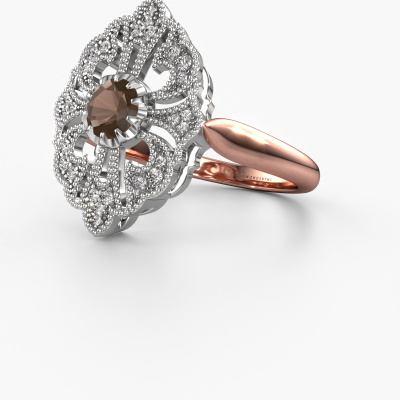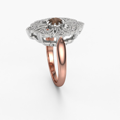 This 14 Carat rose gold ring is called Naida and is set with 5 mm smokey quartz. Is your girlfriend hooked on vintage? Then this rose gold graceful engagement ring will surely match her style perfectly. A trendy ring with just a hint of vintage adornment. A truly stunning, romantic design! Especially when you customize your ring to your own liking. This vintage cluster engagement ring is set with stunning smokey quartz. As you can see, you are the boss in selecting a gemstone which matches the style of your girlfriend best. Each gemstone is carefully selected by our merchants whom are spread throughout the world. Nothing but the best gems for our expert goldsmith. After all, it is his crowning glory! Each jewel is made just for you by our master goldsmiths in our own studio.By using a combination of the latest modern techniques, combined with ancient crafting, we can make all our engagement rings in our own studio. Each jewel is made to order. This is advantageous because we can offer you a price you won't find anywhere else.Do you have a specific ring in mind? One you came across somewhere. Please feel free to tell us your wishes and we will turn your design into a unique engagement ring. You can follow the development of your ring design because we use 3D drawings. This gives you a realistic preview of your design. We will gladly send you a non-binding offer, based on a fair price/ quality ratio. It will amaze you.To make it easier for you, we offer a 30 day return policy. Check our terms and conditions.
