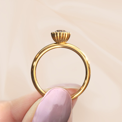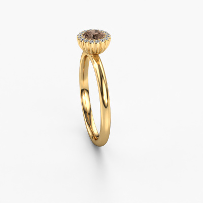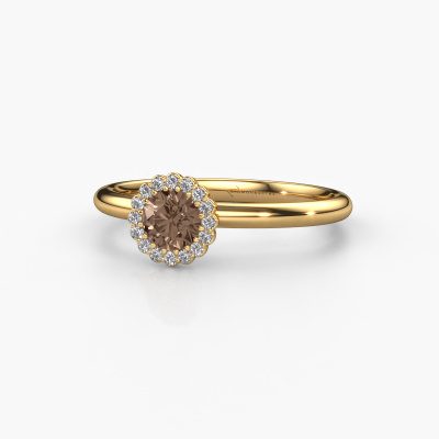 This 14 Carat gold ring is called Queen and is set with 0.38 crt brown diamond. For you, there is only one person in your life who stands out in a crowd. Only one that makes your heart skip a beat. A true gem! She, above all others, deserves a special gift. A unique customized jewel made in her honour. We believe this ring is perfect for your special moment. Each detail of this exclusive gold cluster engagement ring is selected by hand, crafted and polished by our expert goldsmith in our own artisan studio. We strive to achieve the perfect design and composition of the ring, so it enhances the unique features of our brown diamonds, and lets them shine even brighter. It takes a lot of precision to make but in the end it pays off because of the sheer beauty of the ring. And that is our main goal. It's what gets us excited. The great thing about our online tool is, that you can design your own jewellery into a unique, personalized piece. This unique charming engagement ring is created with the precious metal combination of gold and gold. But of course you are completely free to select other colours. Each piece of jewellery is made just for you by our master goldsmiths in our own studio.Are you on a budget? Please feel free to contact us, so we can go discuss your options. We offer our engagement rings at guaranteed best price, because we make them to order. You won't find such a price anywhere else!Our team adds new designs to our online collection daily. Our designers and goldsmiths work together in creating the best design. We strive to offer a diverse collection of jewels. Perhaps you have a specific jewel design in mind. One you came across somewhere. Please contact us for a free consultation. We will make you an offer, based on a fair price/ quality ratio, that will baffle you.To make it easier for you, we offer a 30 day return policy. Check our terms and conditions.
