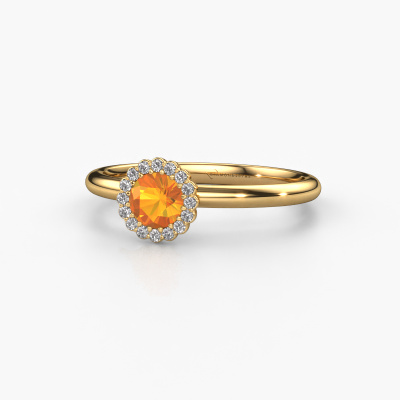 This 14 Carat gold ring is called Queen and is set with 4.2 mm citrin. For you, there is only one person in your life who stands out in a crowd. Only one that makes your heart skip a beat. A true gem! She, above all others, deserves a special gift. A unique customized jewel made in her honour. We believe this ring is perfect for your special moment. Each detail of this exclusive gold cluster engagement ring is selected by hand, crafted and polished by our expert goldsmith in our own artisan studio. We strive to achieve the perfect design and composition of the ring, so it enhances the unique features of our citrin, and lets them shine even brighter. It takes a lot of precision to make but in the end it pays off because of the sheer beauty of the ring. And that is our main goal. It's what gets us excited. The great thing about our online tool is, that you can design your own jewellery into a unique, personalized piece. This unique charming engagement ring is created with the precious metal combination of gold and gold. But of course you are completely free to select other colours. Each piece of jewellery is made just for you by our master goldsmiths in our own studio.Are you on a budget? Please feel free to contact us, so we can go discuss your options. We offer our engagement rings at guaranteed best price, because we make them to order. You won't find such a price anywhere else!Our team adds new designs to our online collection daily. Our designers and goldsmiths work together in creating the best design. We strive to offer a diverse collection of jewels. Perhaps you have a specific jewel design in mind. One you came across somewhere. Please contact us for a free consultation. We will make you an offer, based on a fair price/ quality ratio, that will baffle you.To make it easier for you, we offer a 30 day return policy. Check our terms and conditions.