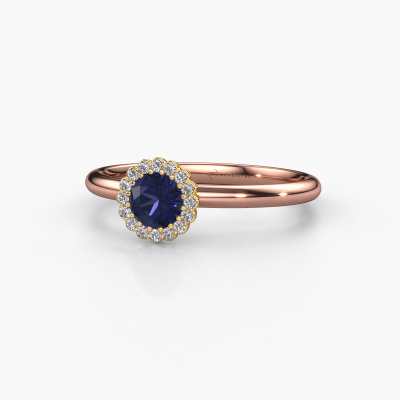 This 14 Carat rose gold ring is called Queen and is set with 4.2 mm sapphire. For you, there is only one person in your life who stands out in a crowd. Only one that makes your heart skip a beat. A true gem! She, above all others, deserves a special gift. A unique customized jewel made in her honour. We believe this ring is perfect for your special moment. Each detail of this exclusive rose gold cluster engagement ring is selected by hand, crafted and polished by our expert goldsmith in our own artisan studio. We strive to achieve the perfect design and composition of the ring, so it enhances the unique features of our sapphire, and lets them shine even brighter. It takes a lot of precision to make but in the end it pays off because of the sheer beauty of the ring. And that is our main goal. It's what gets us excited. The great thing about our online tool is, that you can design your own jewellery into a unique, personalized piece. This unique charming engagement ring is created with the precious metal combination of rose gold and gold. But of course you are completely free to select other colours. Each piece of jewellery is made just for you by our master goldsmiths in our own studio.Are you on a budget? Please feel free to contact us, so we can go discuss your options. We offer our engagement rings at guaranteed best price, because we make them to order. You won't find such a price anywhere else!Our team adds new designs to our online collection daily. Our designers and goldsmiths work together in creating the best design. We strive to offer a diverse collection of jewels. Perhaps you have a specific jewel design in mind. One you came across somewhere. Please contact us for a free consultation. We will make you an offer, based on a fair price/ quality ratio, that will baffle you.To make it easier for you, we offer a 30 day return policy. Check our terms and conditions.