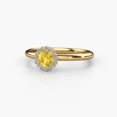 This 14 Carat gold ring is called Queen and is set with 4.2 mm yellow sapphire. For you, there is only one person in your life who stands out in a crowd. Only one that makes your heart skip a beat. A true gem! She, above all others, deserves a special gift. A unique customized jewel made in her honour. We believe this ring is perfect for your special moment. Each detail of this exclusive gold cluster engagement ring is selected by hand, crafted and polished by our expert goldsmith in our own artisan studio. We strive to achieve the perfect design and composition of the ring, so it enhances the unique features of our yellow sapphire, and lets them shine even brighter. It takes a lot of precision to make but in the end it pays off because of the sheer beauty of the ring. And that is our main goal. It's what gets us excited. The great thing about our online tool is, that you can design your own jewellery into a unique, personalized piece. This unique charming engagement ring is created with the precious metal combination of gold and gold. But of course you are completely free to select other colours. Each piece of jewellery is made just for you by our master goldsmiths in our own studio.Are you on a budget? Please feel free to contact us, so we can go discuss your options. We offer our engagement rings at guaranteed best price, because we make them to order. You won't find such a price anywhere else!Our team adds new designs to our online collection daily. Our designers and goldsmiths work together in creating the best design. We strive to offer a diverse collection of jewels. Perhaps you have a specific jewel design in mind. One you came across somewhere. Please contact us for a free consultation. We will make you an offer, based on a fair price/ quality ratio, that will baffle you.To make it easier for you, we offer a 30 day return policy. Check our terms and conditions.
