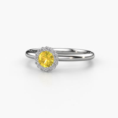 This platinum ring is called Queen and is set with 4.2 mm yellow sapphire. For you, there is only one person in your life who stands out in a crowd. Only one that makes your heart skip a beat. A true gem! She, above all others, deserves a special gift. A unique customized jewel made in her honour. We believe this ring is perfect for your special moment. Each detail of this exclusive platinum cluster engagement ring is selected by hand, crafted and polished by our expert goldsmith in our own artisan studio. We strive to achieve the perfect design and composition of the ring, so it enhances the unique features of our yellow sapphire, and lets them shine even brighter. It takes a lot of precision to make but in the end it pays off because of the sheer beauty of the ring. And that is our main goal. It's what gets us excited. The great thing about our online tool is, that you can design your own jewellery into a unique, personalized piece. This unique charming engagement ring is created with the precious metal combination of platinum and platinum. But of course you are completely free to select other colours. Each piece of jewellery is made just for you by our master goldsmiths in our own studio.Are you on a budget? Please feel free to contact us, so we can go discuss your options. We offer our engagement rings at guaranteed best price, because we make them to order. You won't find such a price anywhere else!Our team adds new designs to our online collection daily. Our designers and goldsmiths work together in creating the best design. We strive to offer a diverse collection of jewels. Perhaps you have a specific jewel design in mind. One you came across somewhere. Please contact us for a free consultation. We will make you an offer, based on a fair price/ quality ratio, that will baffle you.To make it easier for you, we offer a 30 day return policy. Check our terms and conditions.