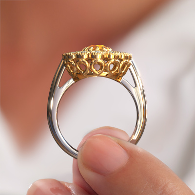 This 14 Carat white gold ring is called Kaat and is set with 5 mm citrin. Is your girlfriend hooked on vintage? Then this white gold pearl edges engagement ring will surely match her style perfectly. A trendy ring with just a hint of vintage adornment. A truly stunning, romantic design! Especially when you customize your ring to your own liking. This vintage cluster engagement ring is set with stunning citrin. As you can see, you are the boss in selecting a gemstone which matches the style of your girlfriend best. Each gemstone is carefully selected by our merchants whom are spread throughout the world. Nothing but the best gems for our expert goldsmith. After all, it is his crowning glory! Each jewel is created to add sparkle to your finger, each jewel is lovingly made by hand by our goldsmiths.Because we design and deliver our own rings, we can offer you a engagement ring at a price you won't find anywhere else. A ring is made to order, which helps prevent excess supplies, so we can make you a great price offer. We understand it feels risky, buying your engagement ring online, but we will gladly assist in the designing process, taking your budget into consideration.Our team adds new designs to our online collection daily. Our designers and goldsmiths work together in creating the best design. We strive to offer a diverse collection of jewels. Perhaps you have a specific jewel design in mind. One you came across somewhere. Please contact us for a free consultation. We will make you an offer, based on a fair price/ quality ratio, that will baffle you.To make it easier for you, we offer a 30 day return policy. Check our terms and conditions.