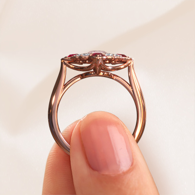 This 14 Carat rose gold ring is called Door and is set with 7x5 mm morganite champagne. An extraordinary rose gold vintage ring. One that will surely make the love of your life shine like a diamond! That is what we hope to achieve. This vintage engagement ring is set with exquisite morganite champagne. Whichever gemstone you choose from our selection, is up to you. The gemstone is selected with great care because we believe your daring engagement ring must be adorned with nothing but the most beautiful gemstone. Wouldn't you agree? Our expert goldsmith will design your ring in our own crafting studio, where the morganite champagne will be set with great precision. The ring will then be polished till it shines perfectly. Nothing but the best for the love of your life! This jewel is made just for you by our master goldsmiths in our own studio.After receiving your order, our goldsmiths will passionately start the creative process of making your engagement ring in our own studio. Because we don't have a big stockpile, these costs will not be passed on to you. Our pricing is proof of that! We offer top quality jewels at lowest price, guaranteed.Our team adds new designs to our online collection daily. Our designers and goldsmiths work together in creating the best design. We strive to offer a diverse collection of jewels. Perhaps you have a specific jewel design in mind. One you came across somewhere. Please contact us for a free consultation. We will make you an offer, based on a fair price/ quality ratio, that will baffle you.To make it easier for you, we offer a 30 day return policy. Check our terms and conditions.