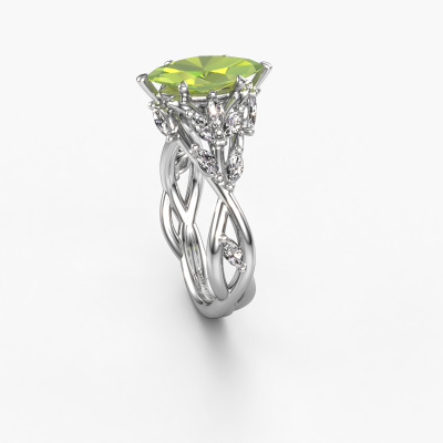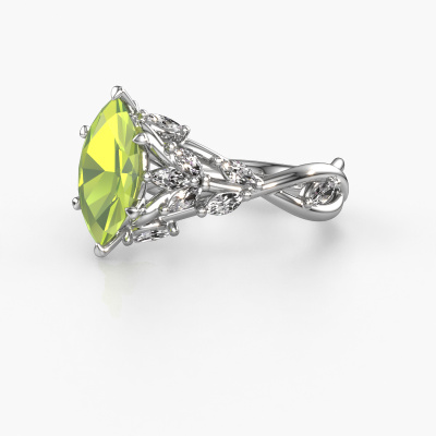 This 14 Carat white gold ring is called Samantha MRQ and is set with 11x5.5 mm peridot. This exclusive white gold cluster engagement ring is a true work of art! The ornaments are crafted with a lot of patience and great passion. In order to create this ring with great precision, this craft requires a keen eye and skilful hand. A challenge which ignites a fire in our expert goldsmith. The exquisite peridot are set in a special way so they stand out even more. This gives the ring an even more glamorous appearance. The graceful engagement ring is actually unique on its own because of the gemstones which we carefully select especially for this ring. On top of that you select the precious metals which will be used to create a unique ring for the most extraordinary woman in your life! This jewel is created to add sparkle to your finger, each jewel is lovingly made by hand by our goldsmiths.By using a combination of the latest modern techniques, combined with ancient crafting, we can make all our engagement rings in our own studio. Each jewel is made to order. This is advantageous because we can offer you a price you won't find anywhere else.Our team adds new designs to our online collection daily. Our designers and goldsmiths work together in creating the best design. We strive to offer a diverse collection of jewels. Perhaps you have a specific jewel design in mind. One you came across somewhere. Please contact us for a free consultation. We will make you an offer, based on a fair price/ quality ratio, that will baffle you.To make it easier for you, we offer a 30 day return policy. Check our terms and conditions.