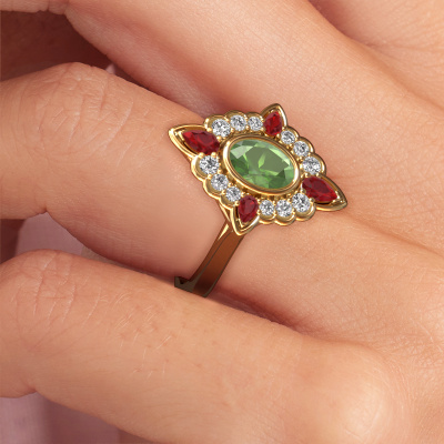 This 14 Carat gold ring is called Door and is set with 7x5 mm tourmaline green. An extraordinary gold vintage ring. One that will surely make the love of your life shine like a diamond! That is what we hope to achieve. This vintage engagement ring is set with exquisite tourmaline green. Whichever gemstone you choose from our selection, is up to you. The gemstone is selected with great care because we believe your daring engagement ring must be adorned with nothing but the most beautiful gemstone. Wouldn't you agree? Our expert goldsmith will design your ring in our own crafting studio, where the tourmaline green will be set with great precision. The ring will then be polished till it shines perfectly. Nothing but the best for the love of your life! This jewel is made just for you by our master goldsmiths in our own studio.After receiving your order, our goldsmiths will passionately start the creative process of making your engagement ring in our own studio. Because we don't have a big stockpile, these costs will not be passed on to you. Our pricing is proof of that! We offer top quality jewels at lowest price, guaranteed.Our team adds new designs to our online collection daily. Our designers and goldsmiths work together in creating the best design. We strive to offer a diverse collection of jewels. Perhaps you have a specific jewel design in mind. One you came across somewhere. Please contact us for a free consultation. We will make you an offer, based on a fair price/ quality ratio, that will baffle you.To make it easier for you, we offer a 30 day return policy. Check our terms and conditions.