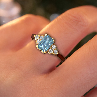 This 14 Carat gold ring is called Myrna RAD and is set with 7x5 mm blue lab grown diamond. Are you looking for a contemporary gold engagement ring which you can customize to your own liking? This contemporary engagement ring is set with blue lab grown diamond which is carefully selected for this specific ring in order to create the best effect. Our expert goldsmith will create your ring in our own crafting studio, where the blue lab grown diamond will be set with great care. The ring will then be polished till it shines perfectly. Nothing but the best for the love of your life! The great thing about our online tool is, that you can compile your own jewellery into a unique, personalized piece. Each piece of jewellery is made with passion and love by one of our master goldsmiths.Are you on a budget? Please feel free to contact us, so we can go discuss your options. We offer our engagement rings at guaranteed best price, because we make them to order. You won't find such a price anywhere else!Have you found a specific engagement ring somewhere which you would like to give to your loved one? Please feel free to express your wishes to our jewel designers because we would be honoured to turn your design into a contemporary engagement ring. You can follow the development of your ring design because we use 3D drawings. This gives you a realistic preview of how your design will look. You can also preorder a dummy. A dummy is a plastic ring, which can be shaped according your ring design. You can try it on and check if its width and size are suitable for you. We will gladly send you a non-binding offer, based on a fair price/ quality ratio. It will amaze you, considering the quality of the ring and gemstones.To make it easier for you, we offer a 30 day return policy. Check our terms and conditions.