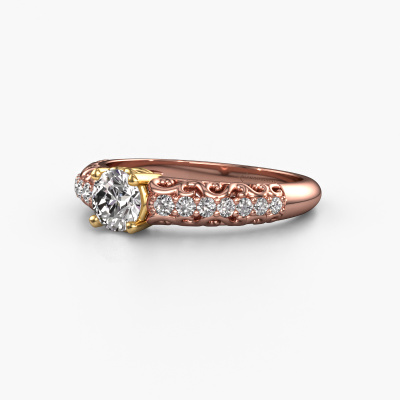This 14 Carat rose gold ring is called Mellie and is set with 5 mm custom diamond. What is it that makes your relationship unique? What is it about her that makes you want to bend down on one knee? The unique bond between the two of you is emphasized by an equally unique ring. A one of a kind filigree pavé solitaire engagement ring made especially for her. That is why this vintage ring fits her like a glove. Each specific detail of this filigree rose gold custom diamond set engagement ring is hand-picked, crafted and polished by our expert goldsmith. The result is an exquisite ring, unique and perfectly crafted to perfection. That is what our expert Goldsmiths strive for. This jewel is made by a team of passionate goldsmiths and jewel designers. This will make your crown jewel truly eye-catching.Are you on a budget? Please feel free to contact us, so we can go discuss your options. We offer our engagement rings at guaranteed best price, because we make them to order. You won't find such a price anywhere else!Have you found a specific engagement ring somewhere which you would like to give to your loved one? Please feel free to express your wishes to our jewel designers because we would be honoured to turn your design into a vintage engagement ring. You can follow the development of your ring design because we use 3D drawings. This gives you a realistic preview of how your design will look. You can also preorder a dummy. A dummy is a plastic ring, which can be shaped according your ring design. You can try it on and check if its width and size are suitable for you. We will gladly send you a non-binding offer, based on a fair price/ quality ratio. It will amaze you, considering the quality of the ring and gemstones.To make it easier for you, we offer a 30 day return policy. Check our terms and conditions.
