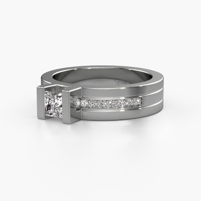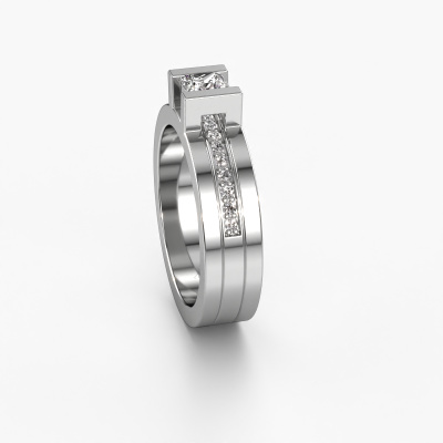 The ring shown above is called the Desire. We call this type of ring a pavé solitaire ring because it has one centre gemstone and a band that is also pave set with gemstones. The 14 Carat white gold engagement ring is set with a princess 4 mm custom diamond centre stone and the band is pave set with diamond gemstones. Each jewel is made just for you by our master goldsmiths in our own studio.This modern white gold pavé solitaire engagement ring has an exquisite princess custom diamond centre stone. To further accentuate the centre stone, the band is fully set with more diamonds. Its open prong setting allows light to strike the custom diamond from various angles and this adds sparkle to your custom diamond ring. The photo shown above depicts the goldsmith's carefully handcrafted details of the ring. The high positioning of the centre stone is truly eye-catching. The perfect engagement ring for the crown jewel of your life! By using a combination of the latest modern techniques, combined with ancient crafting, we can make all our engagement rings in our own studio. Each jewel is made to order. This is advantageous because we can offer you a price you won't find anywhere else.Have you found a specific engagement ring somewhere which you would like to give to your loved one? Please feel free to express your wishes to our jewel designers because we would be honoured to turn your design into a modern engagement ring. You can follow the development of your ring design because we use 3D drawings. This gives you a realistic preview of how your design will look. You can also preorder a dummy. A dummy is a plastic ring, which can be shaped according your ring design. You can try it on and check if its width and size are suitable for you. We will gladly send you a non-binding offer, based on a fair price/ quality ratio. It will amaze you, considering the quality of the ring and gemstones.To make it easier for you, we offer a 30 day return policy. Check our terms and conditions.