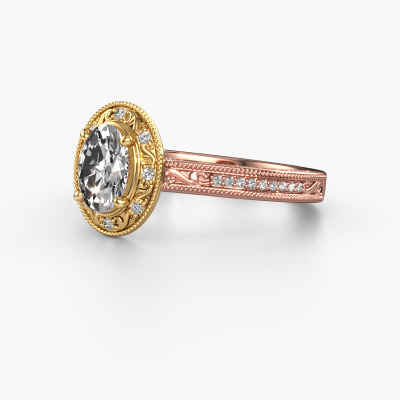 This 14 Carat rose gold ring is called Alice OVL and is set with 7x5 mm zirconia. What is it that makes your relationship unique? What is it about her that makes you want to bend down on one knee? The unique bond between the two of you is emphasized by an equally unique ring. A one of a kind filigree halo engagement ring made especially for her. That is why this vintage ring fits her like a glove. Each specific detail of this filigree rose gold zirconia set engagement ring is hand-picked, crafted and polished by our expert goldsmith. The result is an exquisite ring, unique and perfectly crafted to perfection. That is what our expert Goldsmiths strive for. This jewel is made with passion and love by one of our master goldsmiths.By using our modern techniques, we can design and customize the finest quality jewels with the utmost care for you. Our engagement rings are always priced 30 percent lower than other jewellers. We make engagement rings to order so we don't have to maintain a large stock. If you have a certain budget, we are more than happy to advice you accordingly.Our team adds new designs to our online collection daily. Our designers and goldsmiths work together in creating the best design. We strive to offer a diverse collection of jewels. Perhaps you have a specific jewel design in mind. One you came across somewhere. Please contact us for a free consultation. We will make you an offer, based on a fair price/ quality ratio, that will baffle you.To make it easier for you, we offer a 30 day return policy. Check our terms and conditions.