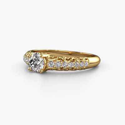 This 14 Carat gold ring is called Mellie and is set with 5 mm zirconia. What is it that makes your relationship unique? What is it about her that makes you want to bend down on one knee? The unique bond between the two of you is emphasized by an equally unique ring. A one of a kind filigree pavé solitaire engagement ring made especially for her. That is why this vintage ring fits her like a glove. Each specific detail of this filigree gold zirconia set engagement ring is hand-picked, crafted and polished by our expert goldsmith. The result is an exquisite ring, unique and perfectly crafted to perfection. That is what our expert Goldsmiths strive for. This jewel is made by a team of passionate goldsmiths and jewel designers. This will make your crown jewel truly eye-catching.Are you on a budget? Please feel free to contact us, so we can go discuss your options. We offer our engagement rings at guaranteed best price, because we make them to order. You won't find such a price anywhere else!Have you found a specific engagement ring somewhere which you would like to give to your loved one? Please feel free to express your wishes to our jewel designers because we would be honoured to turn your design into a vintage engagement ring. You can follow the development of your ring design because we use 3D drawings. This gives you a realistic preview of how your design will look. You can also preorder a dummy. A dummy is a plastic ring, which can be shaped according your ring design. You can try it on and check if its width and size are suitable for you. We will gladly send you a non-binding offer, based on a fair price/ quality ratio. It will amaze you, considering the quality of the ring and gemstones.To make it easier for you, we offer a 30 day return policy. Check our terms and conditions.