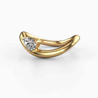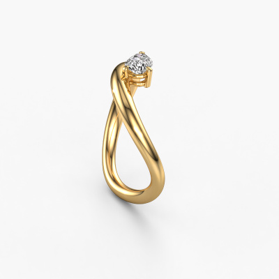 The ring shown above is called the Chloe PER. We call this a solitaire ring because it contains a single gemstone. The engagement ring is made in 14 Carat gold and has a pear diamond of 0.45 crt. This extraordinary design gold solitaire engagement