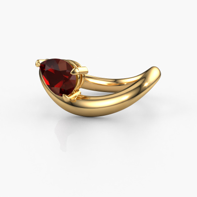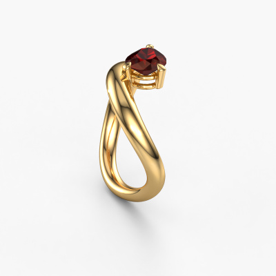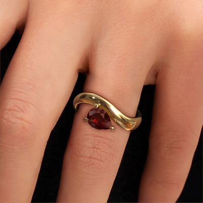 The ring shown above is called the Chloe PER. We call this a solitaire ring because it contains a single gemstone. The engagement ring is made in 14 Carat gold and has a pear garnet of 8x6 mm. This extraordinary design gold solitaire engagement ring