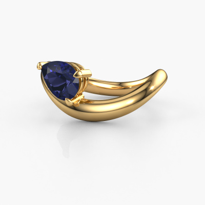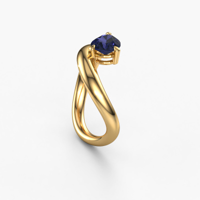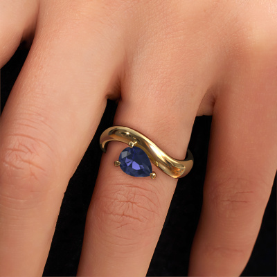 The ring shown above is called the Chloe PER. We call this a solitaire ring because it contains a single gemstone. The engagement ring is made in 14 Carat gold and has a pear sapphire of 8x6 mm. This extraordinary design gold solitaire engagement