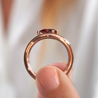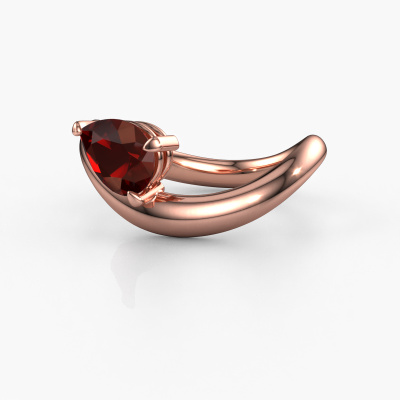 The ring shown above is called the Chloe PER. We call this a solitaire ring because it contains a single gemstone. The engagement ring is made in 14 Carat rose gold and has a pear garnet of 8x6 mm. This extraordinary design rose gold solitaire