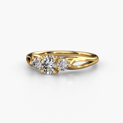 This 14 Carat gold ring is called Amie OVL and is set with 0.55 crt diamond. What is it that makes your relationship unique? What is it about her that makes you want to bend down on one knee? The unique bond between the two of you is emphasized by an equally unique ring. A one of a kind stylish 3-stone engagement ring made especially for her. That is why this fantasy ring fits her like a glove. Each specific detail of this stylish gold diamond set engagement ring is hand-picked, crafted and polished by our expert goldsmith. The result is an exquisite ring, unique and perfectly crafted to perfection. That is what our expert Goldsmiths strive for. This jewel is made to shine bright around your finger. Each jewel is hand made with love by our goldsmiths.By using our modern techniques, we can design and customize the finest quality jewels with the utmost care for you. Our engagement rings are always priced 30 percent lower than other jewellers. We make engagement rings to order so we don't have to maintain a large stock. If you have a certain budget, we are more than happy to advice you accordingly.Do you have a specific ring in mind? One you came across somewhere. Please feel free to tell us your wishes and we will turn your design into a unique engagement ring. You can follow the development of your ring design because we use 3D drawings. This gives you a realistic preview of your design. We will gladly send you a non-binding offer, based on a fair price/ quality ratio. It will amaze you.To make it easier for you, we offer a 30 day return policy. Check our terms and conditions.